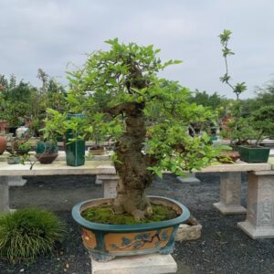 - Kích thước cây: Chiều cao từ mặt chậu lên đỉnh cây 0,75 mét, đường kính gốc cây 45 cm, bóng ngang khoảng 0,6 mét