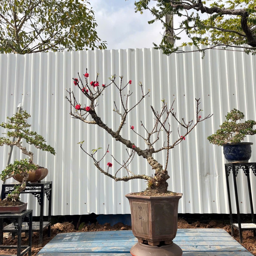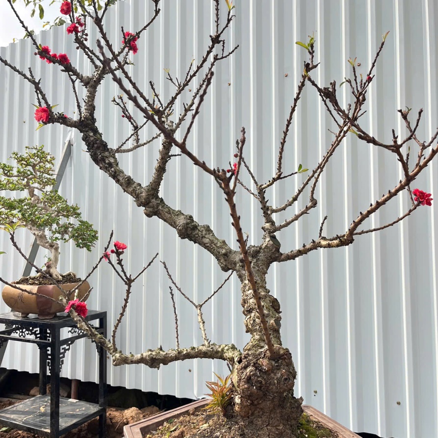 1.Chậu Đào Thất Thốn Hạt Đỏ Bonsai Cắt Giật Hoa Đỏ Siêu Đẹp Mang Sang Trọng, Đẳng Cấp, An Nhiên Tài Lộc Cho Gia Chủ (Mã TV46)