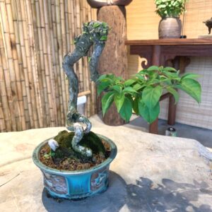 - Kích thước cây: Chiều cao từ mặt chậu lên đỉnh cây 30 cm, Bóng ngang tán rộng 15 cm