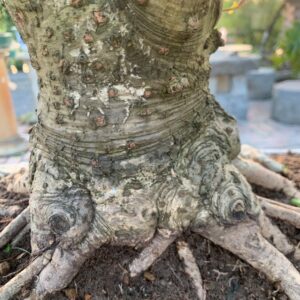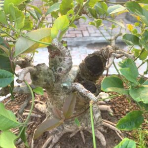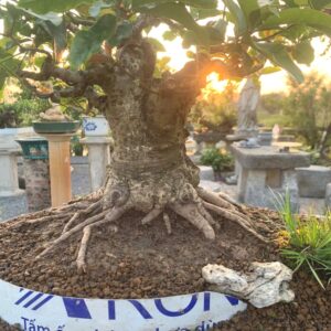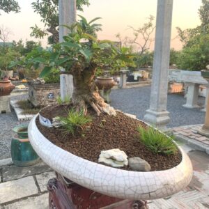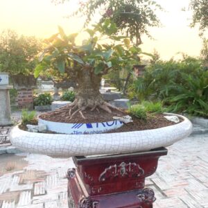 Cây cao 50 cm cả chậu, vanh gốc 55 cm, bóng ngang 40 cm. Trồng trong chậu Tầu cũ