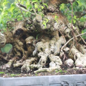 - Kích thước cây: Chiều cao từ mặt chậu lên đỉnh cây 0,8 mét, Bóng ngang cây rộng 90 mét. Đường kính gốc cây 140 cm. Đang nằm trong chậu lọt lòng 90×60
