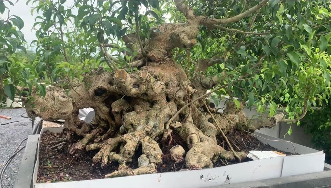 - Kích thước cây: Chiều cao từ mặt chậu lên đỉnh cây 0,8 mét, Bóng ngang cây rộng 90 mét. Đường kính gốc cây 140 cm. Đang nằm trong chậu lọt lòng 90×60