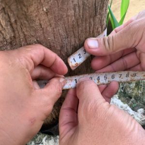 - Kích thước cây: đường kính gốc 80 cm, cây cao từ mặt đất lên tới cành bay 1,8 mét. cành bay dài trên 2 mét và còn phát triển dài về sau. Cây cao 3 mét tính từ mặt đất