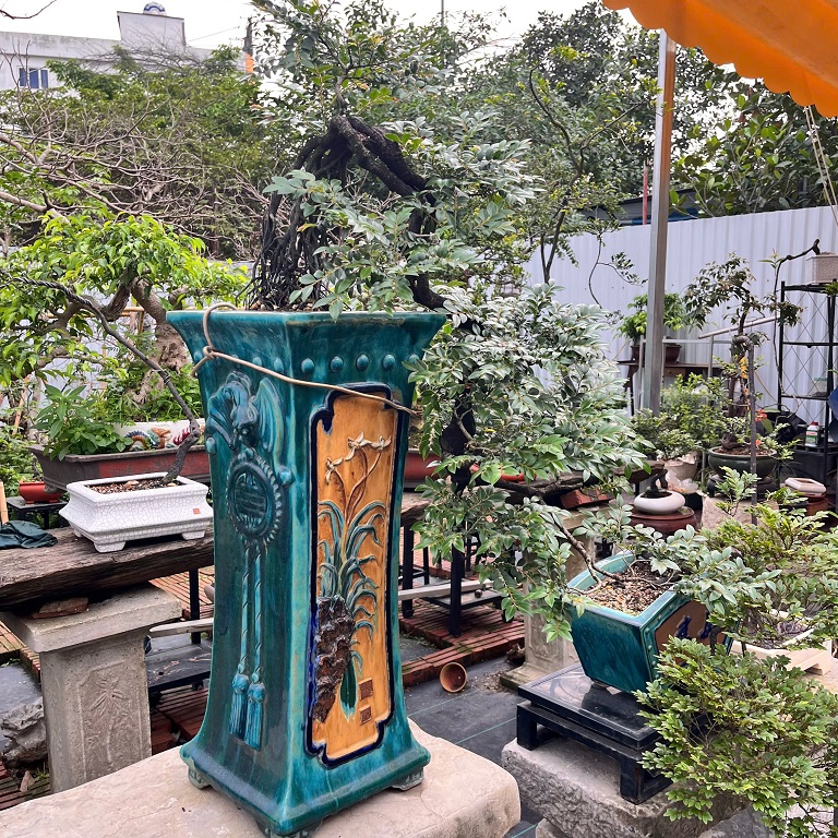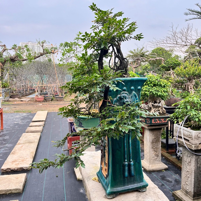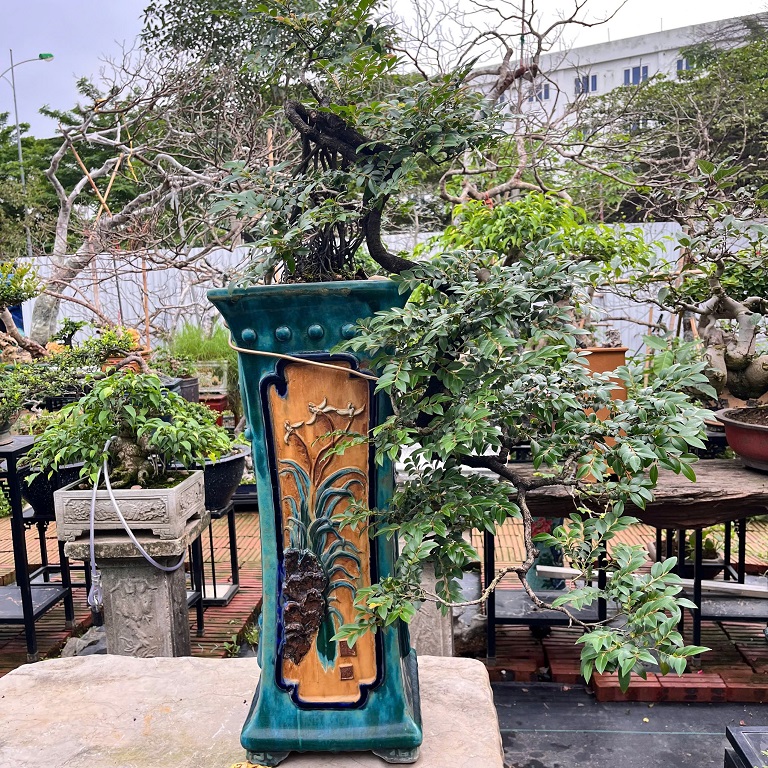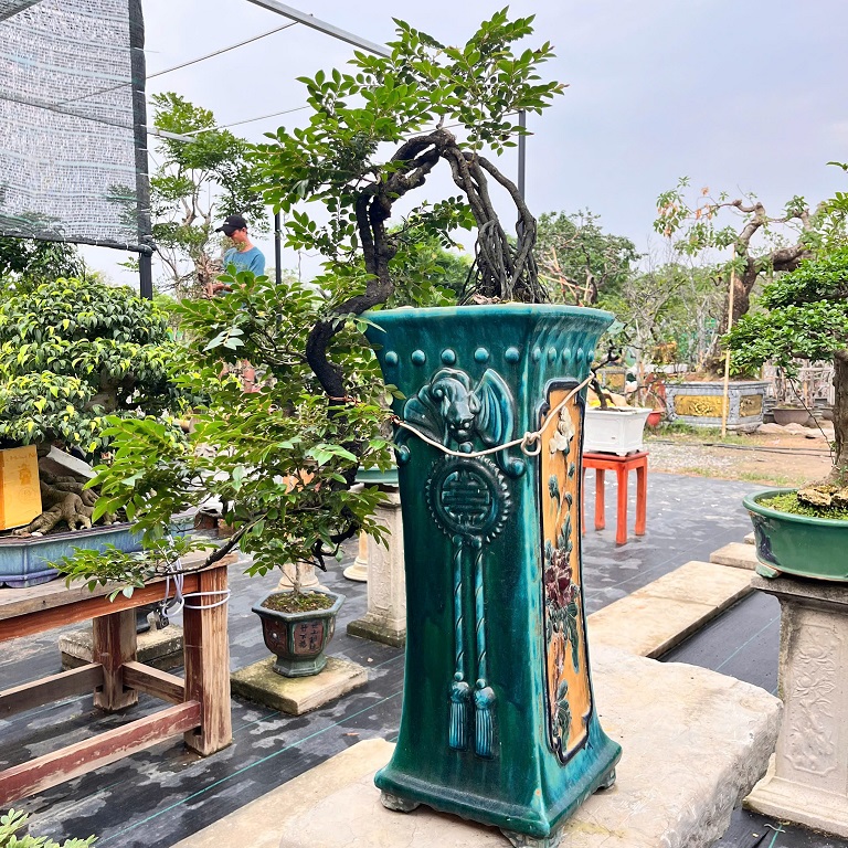 - Xuất xứ cây: từ đảo núi đá Vân Đồn, Quảng Ninh, được nghệ nhân Hà Nội nhiều năm trên chậu theo lối bonsai cắt giật nghệ thuật