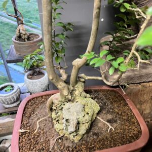 - Kích thước cây: Cây cao 1,4m, bóng rộng 60cm, được ký đá bám đá lâu năm, tay cành làm theo lối nghệ thuật rất kỳ công và đẹp