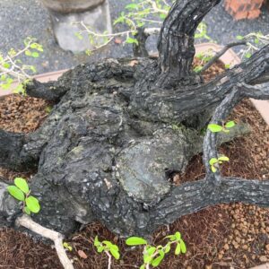 - Cây đang trồng ổn định trên chậu Tầu lâu năm, cây rất già, được làm kỹ theo lối bonsai đương đại