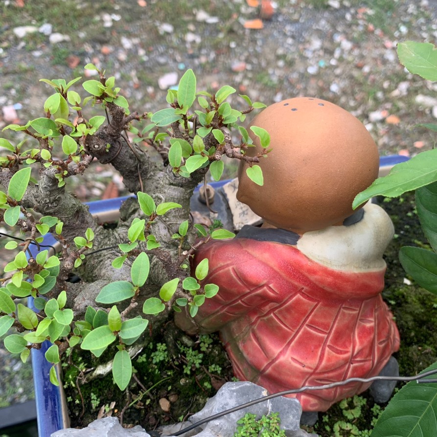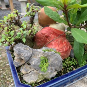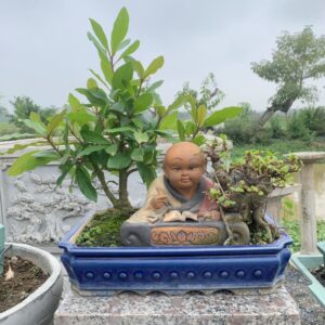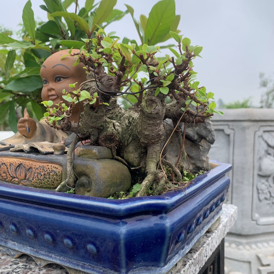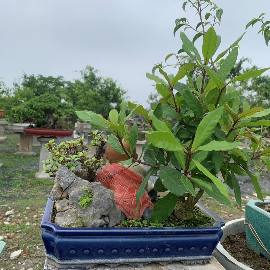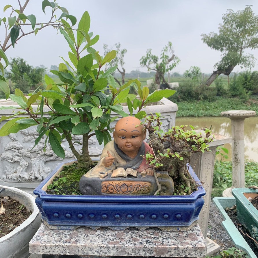 - Cây đang trồng ổn định trên chậu Tầu lâu năm, gồm cây lộc vừng (Cây bóng cao) và cây si tai chuột (cây ôm chú tiểu)