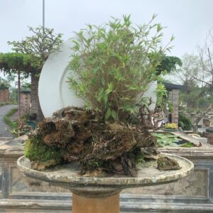 - Bonsai là một loại cây nhỏ được cắt tỉa và duy trì để trông như một cây cổ thụ. Khi kết hợp với cảnh núi non, những áng bồng bềnh mây trời và cỏ cây hoa lá muông thú muôn loài nó cho chúng ta một bức tranh tự nhiên.